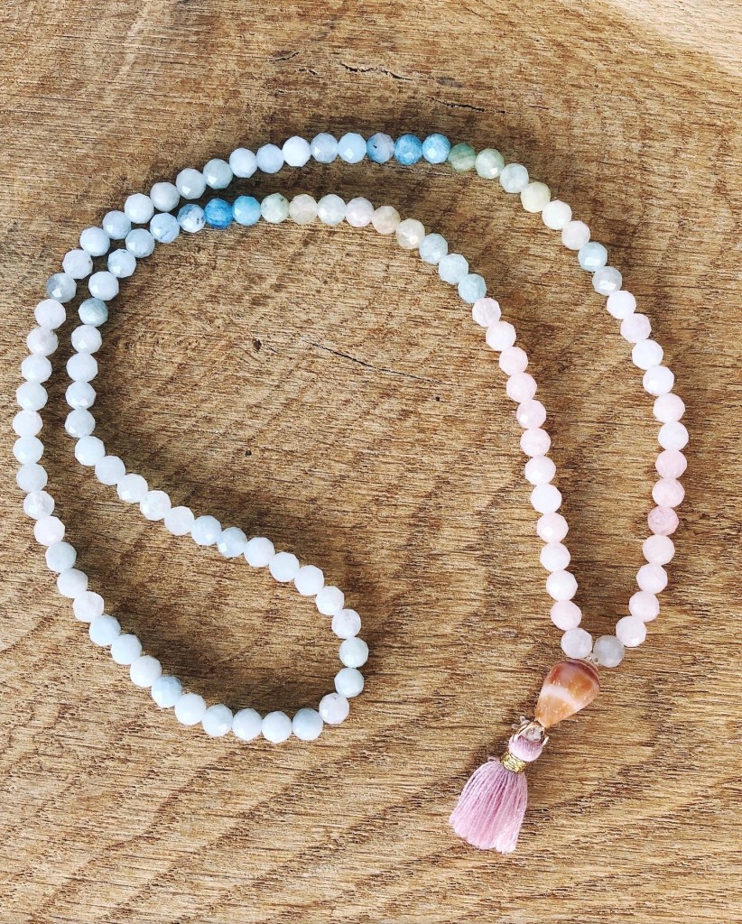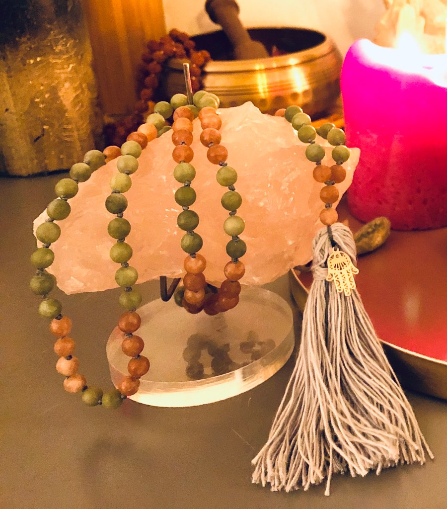 Ketten mit 108 Perlen aus verschiedensten Heilsteinen. Mit Liebe und Mantrengesängen handgeknüpft. Jede Mala ist ein Einzelstück, welches Dich in Deiner Meditationspraxis begleiten darf und die jeden Tag Kraft und Freude spendet.